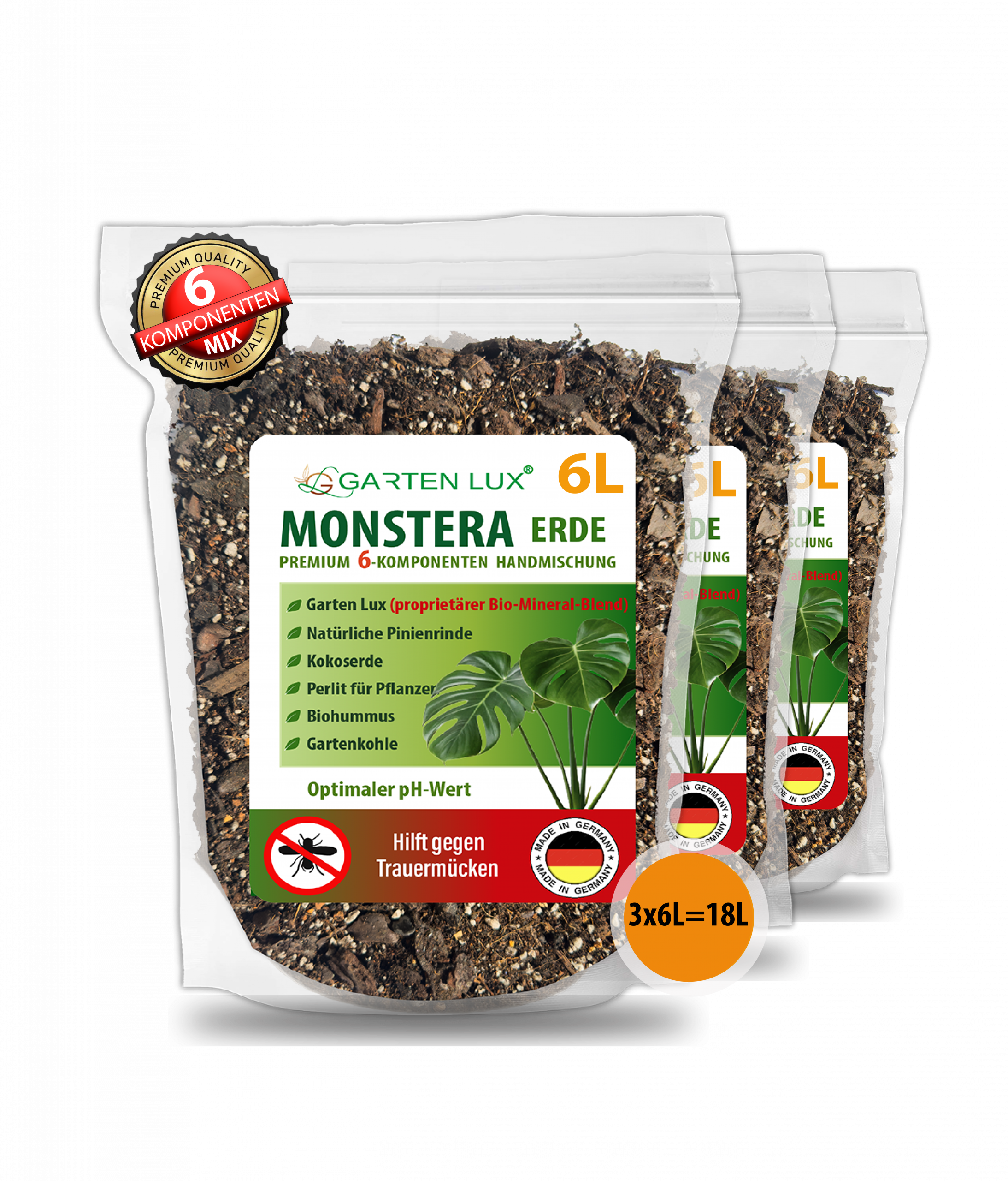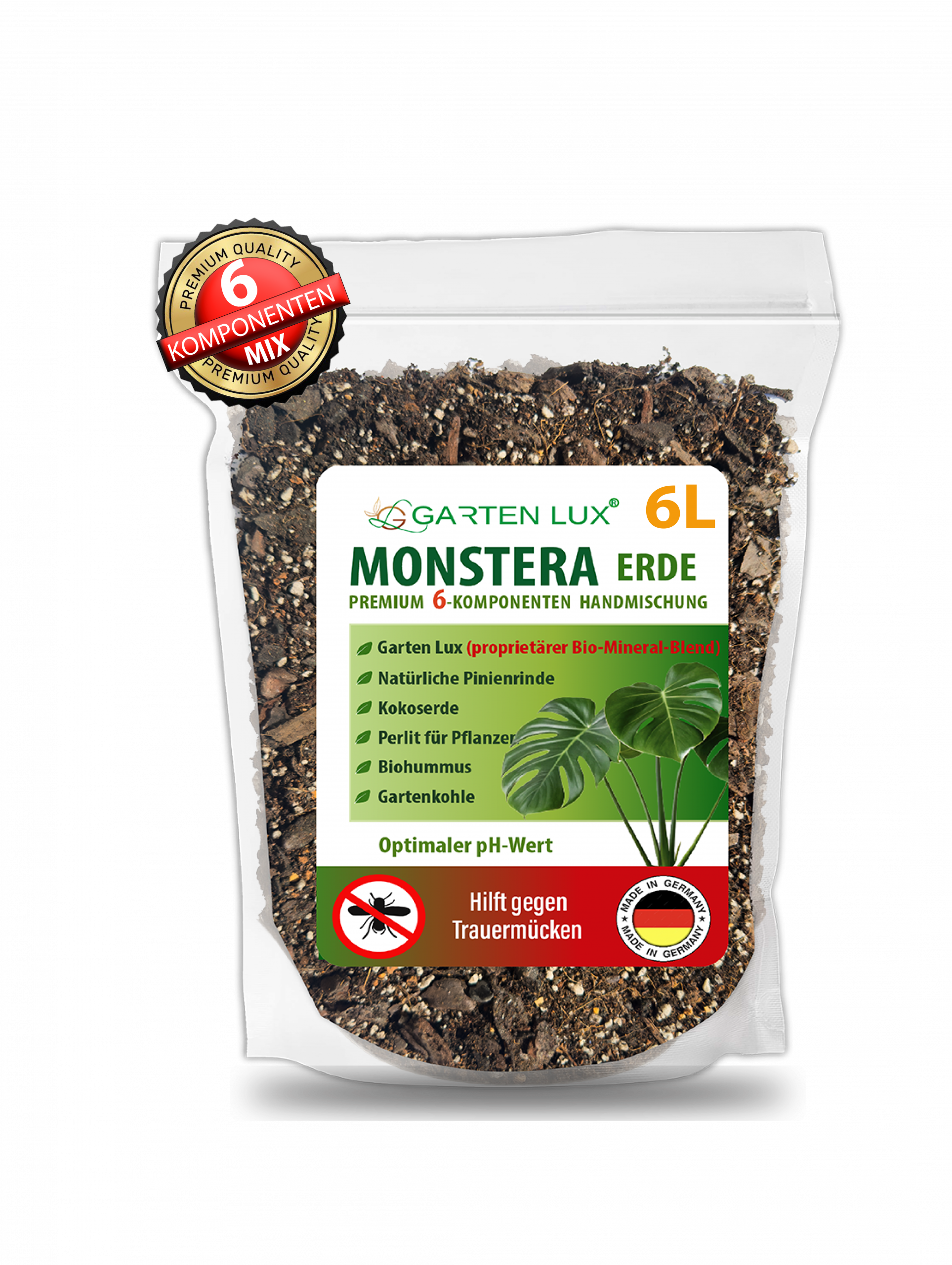 Speziell entwickelte Erdmischung aus 6 natürlichen Komponenten für Monstera Pflanzen