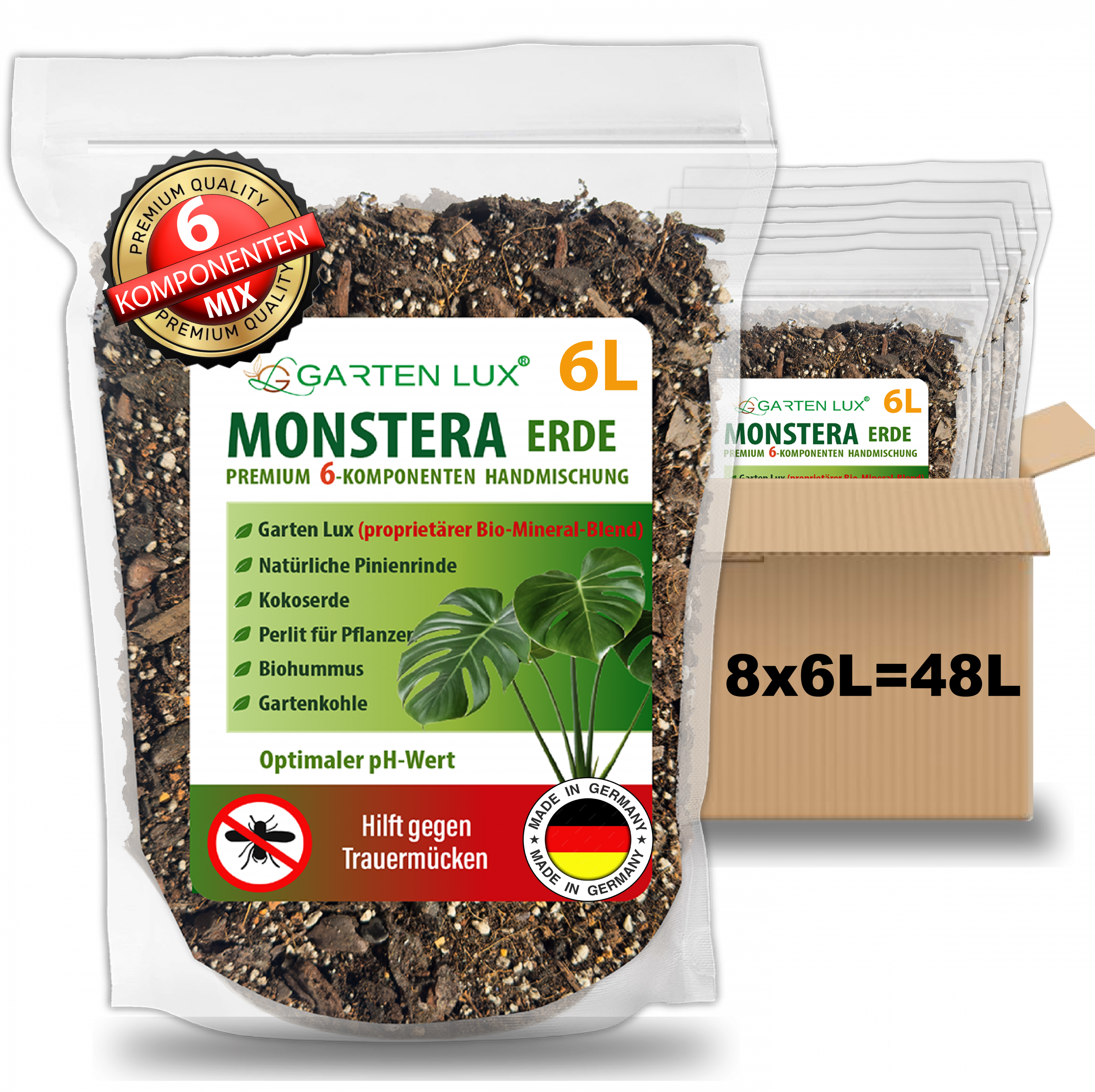 Monstera Erde torffrei – 6‑in‑1 gegen Trauermücken