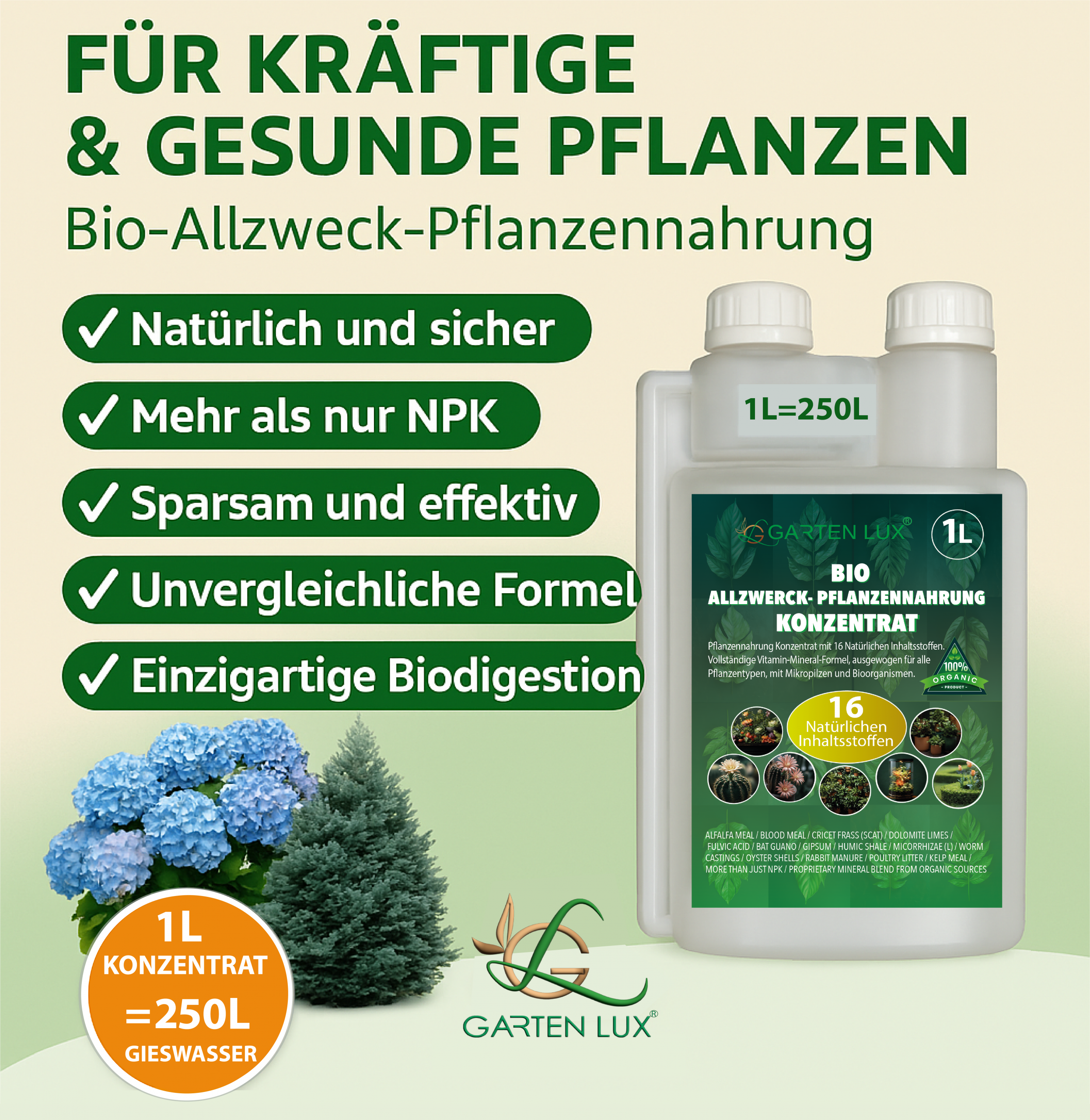 Natürlicher Universal-Flüssigdünger für Zimmer-, Balkon- und Gartenpflanzen