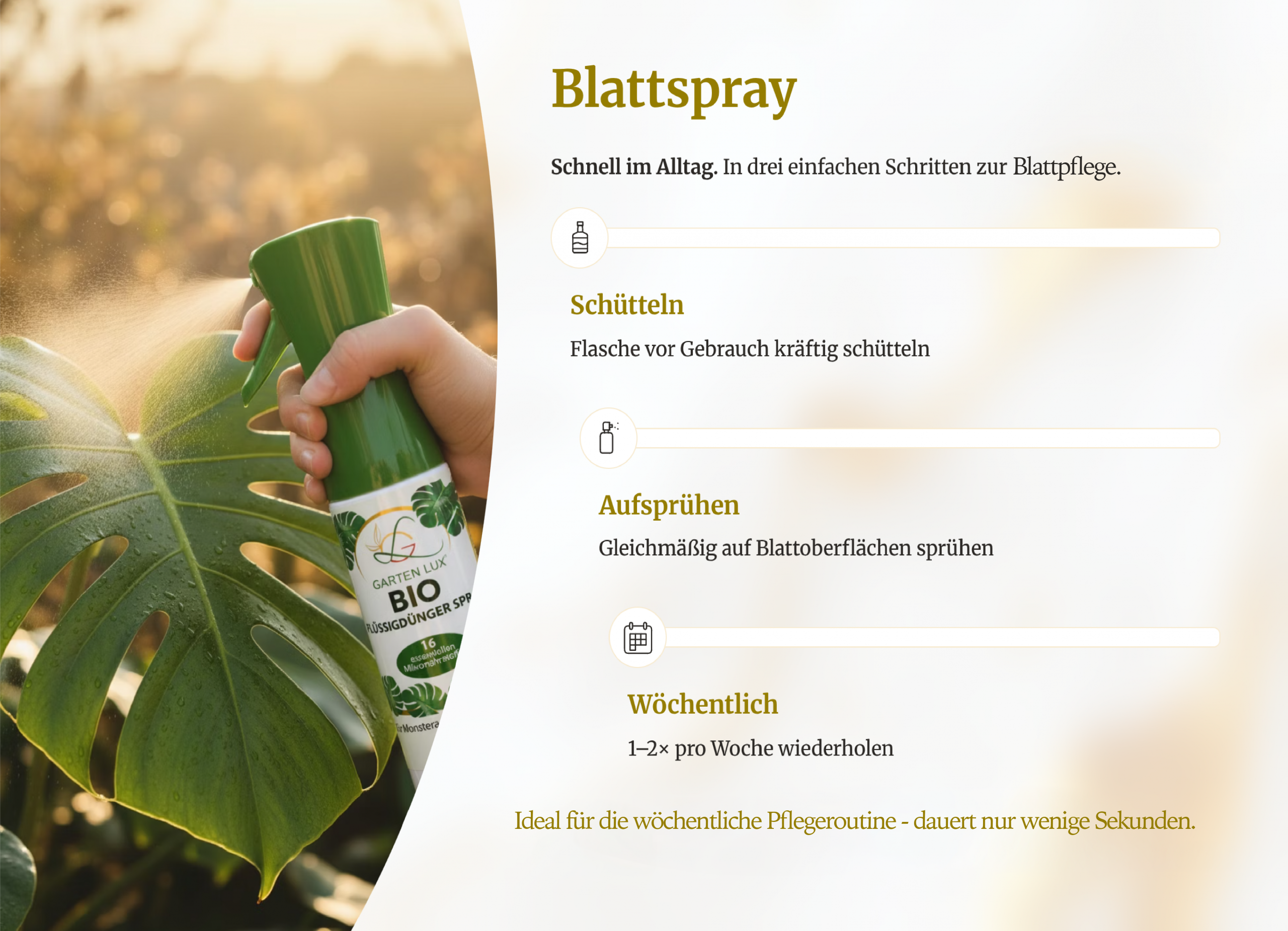 Blattpflege + Wurzelpflege · Spray · Konzentrat · Gießwasser