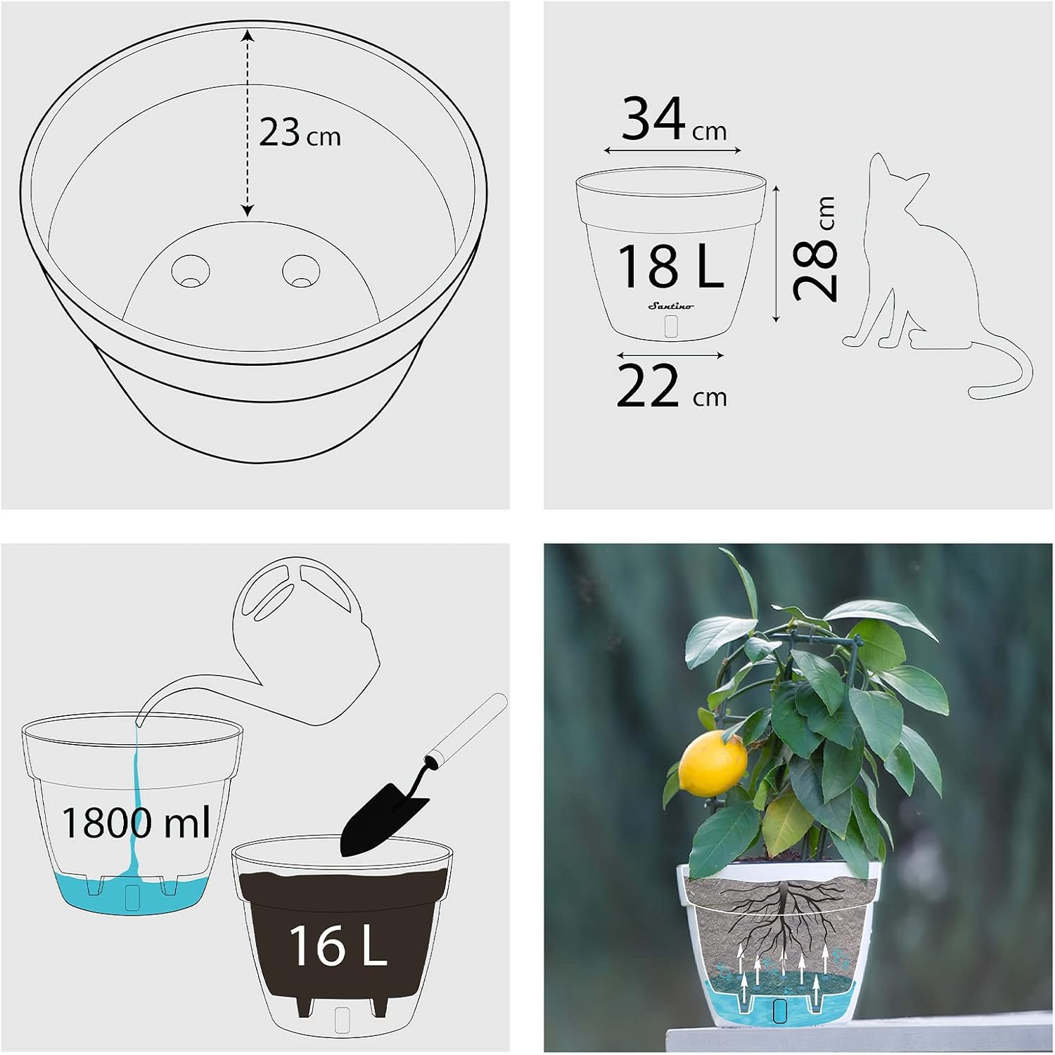 Selbstbewässernder Blumentopf · Herausnehmbarer Innentopf · Wasserstandsanzeige · Sauberes und einfaches Einpflanzen