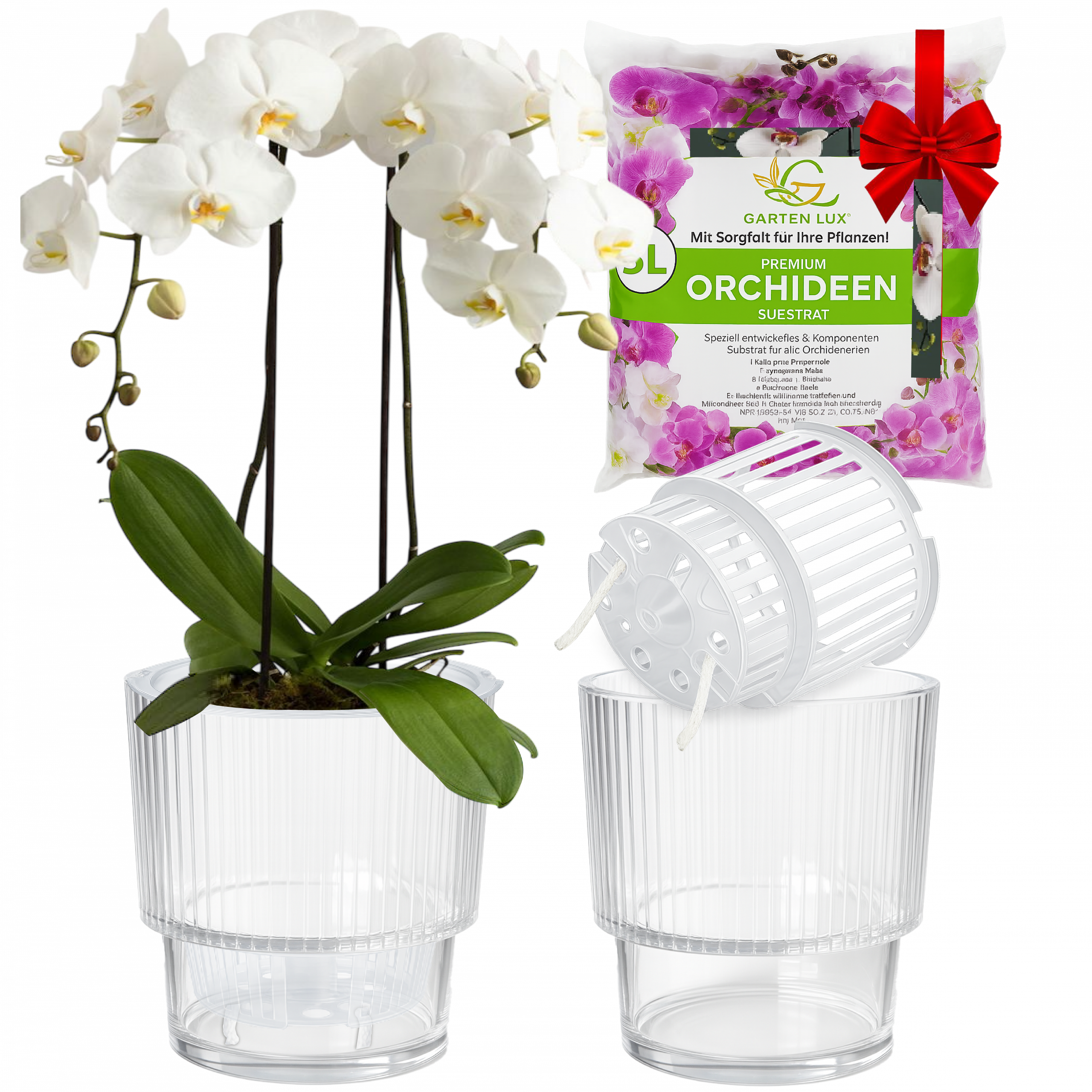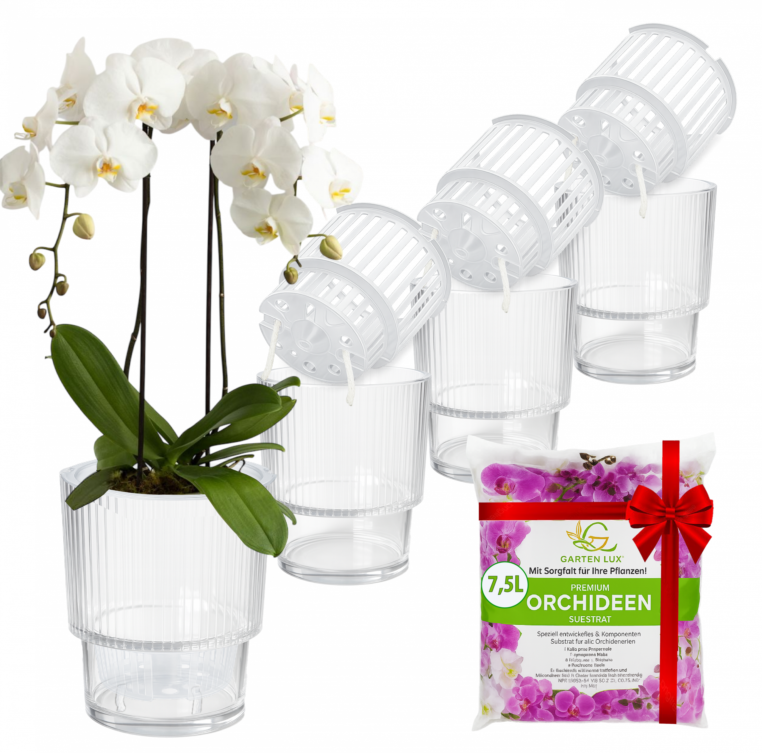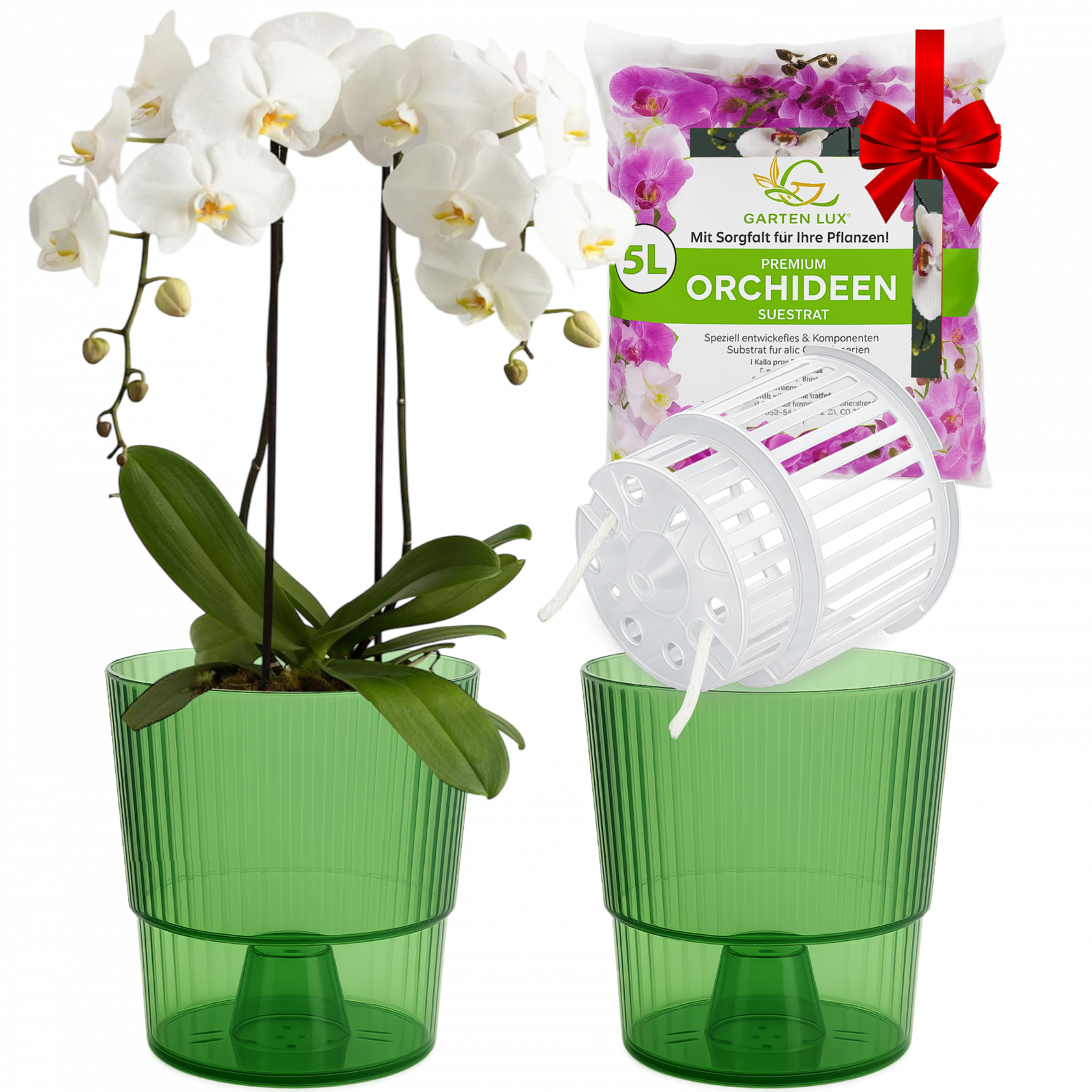 Set Selbstbewässerungstöpfe für Orchideen + Orchideensubstrat für alle Orchideenarten für den Innen Pflanze nicht enthalten!