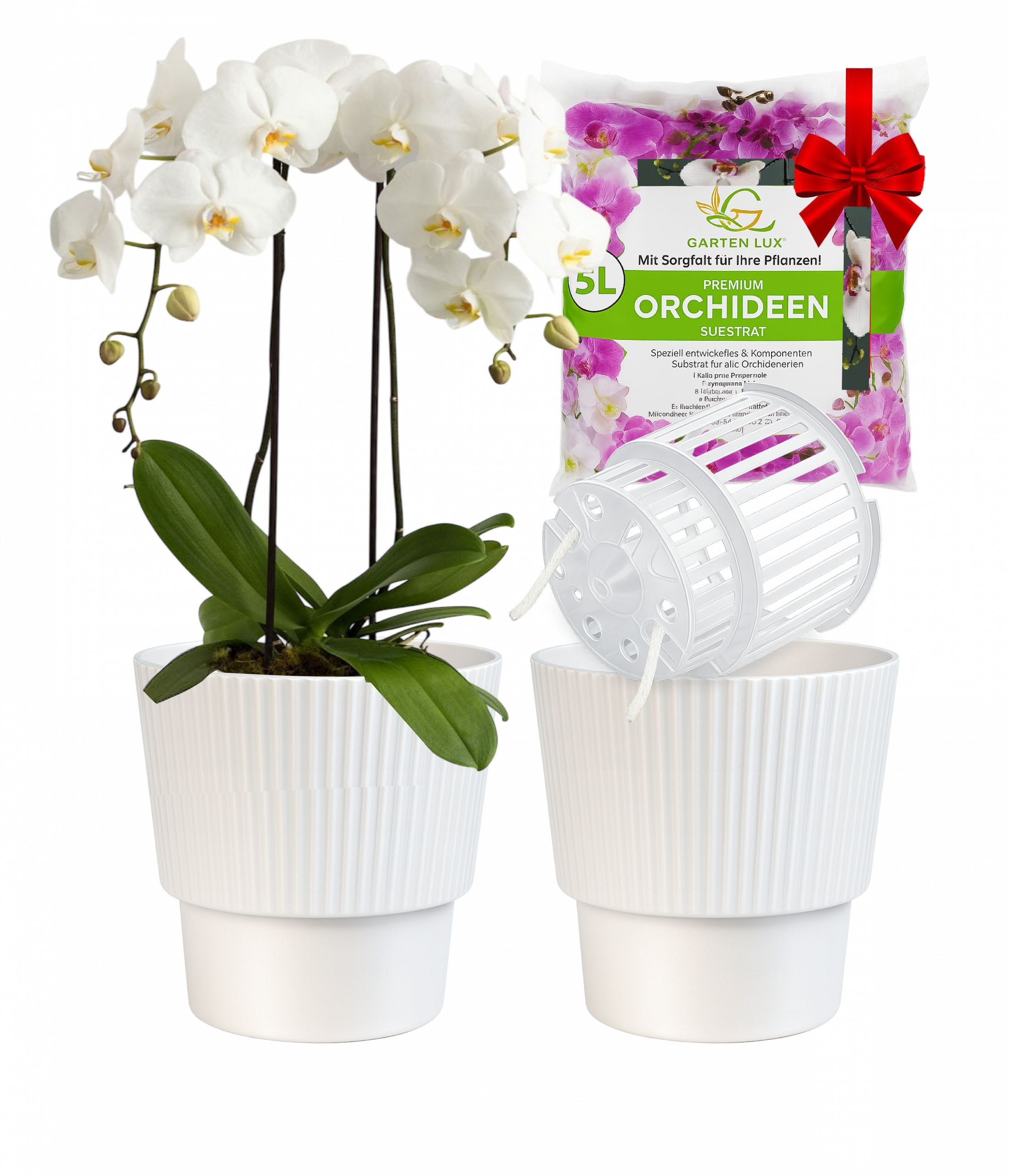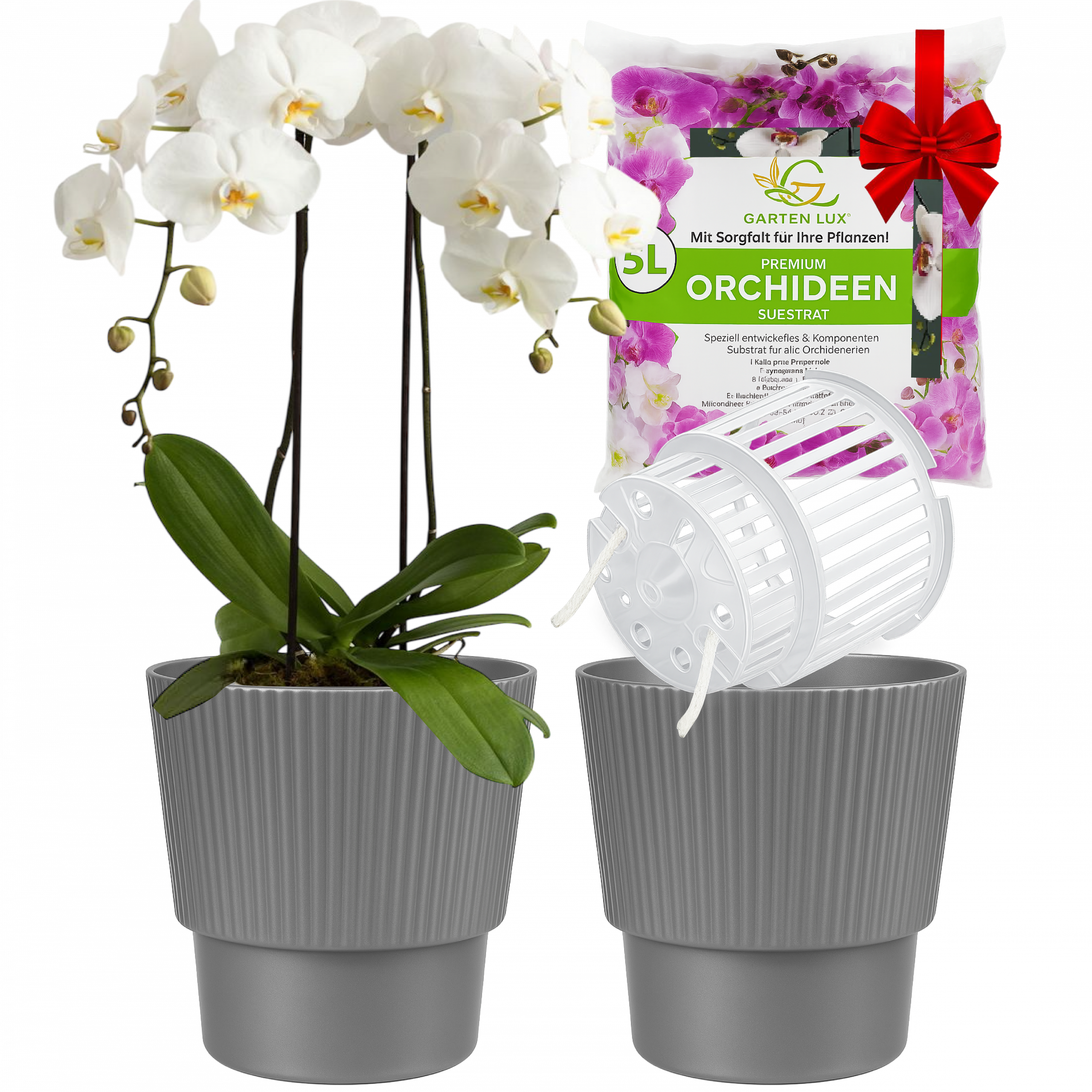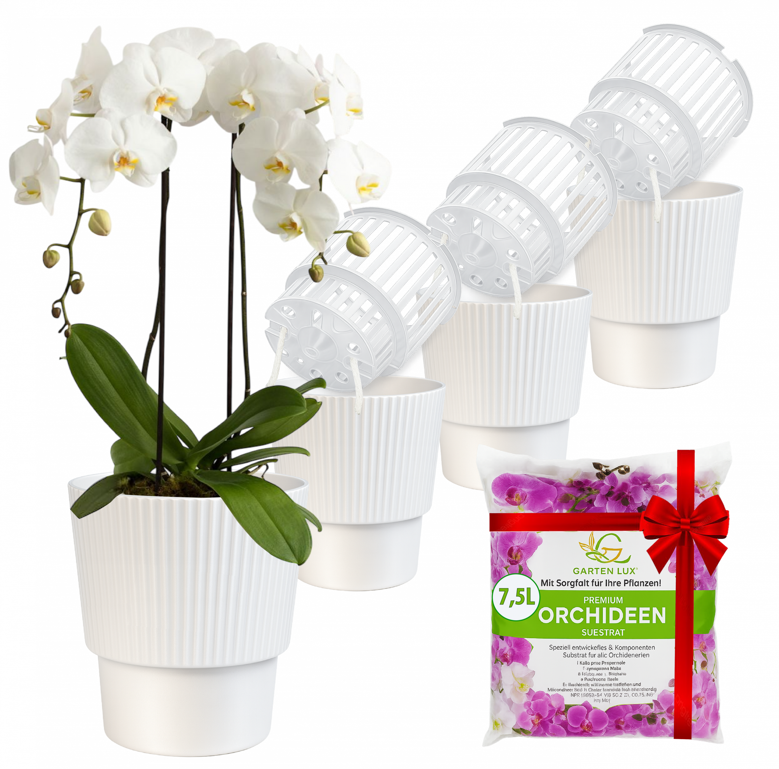 Set Selbstbewässerungstöpfe für Orchideen + Orchideensubstrat für alle Orchideenarten für den Innen Pflanze nicht enthalten!