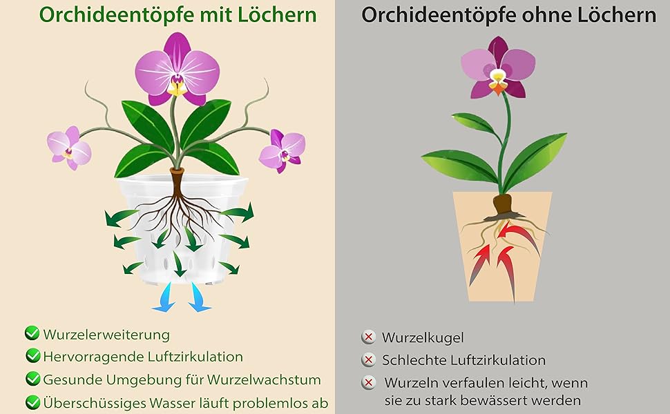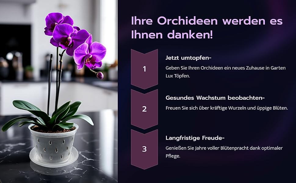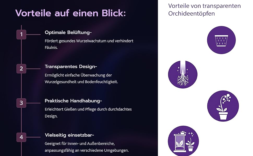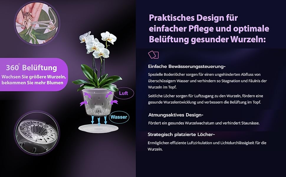Ideal für Orchideenliebhaber und Pflanzenfreunde, die Wert auf gesundes Wachstum, saubere Bewässerung und eine ansprechende Präsentation legen.