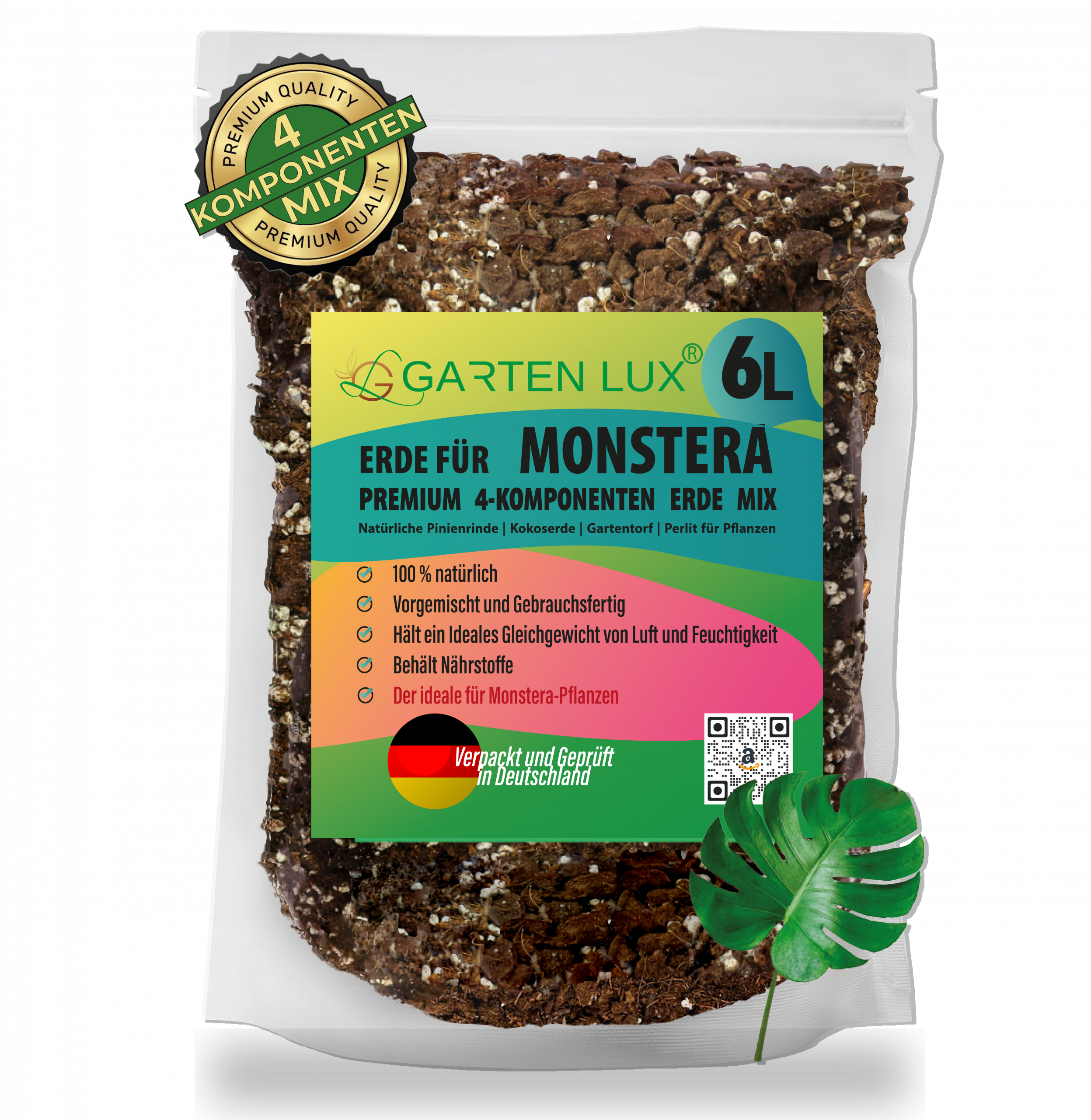 Unsere Substrat Mischung, zusammengestellt aus vier natürlichen Bestandteilen – Gartentorf, Perlite, Kokoserde und Pinienrinde, schafft optimale Bedingungen für Monstera-Pflanzen. Sie unterstützt das Wurzelwachstum mit idealer Feuchtigkeitsbalance, guter Drainage und notwendiger Luftzirkulation.